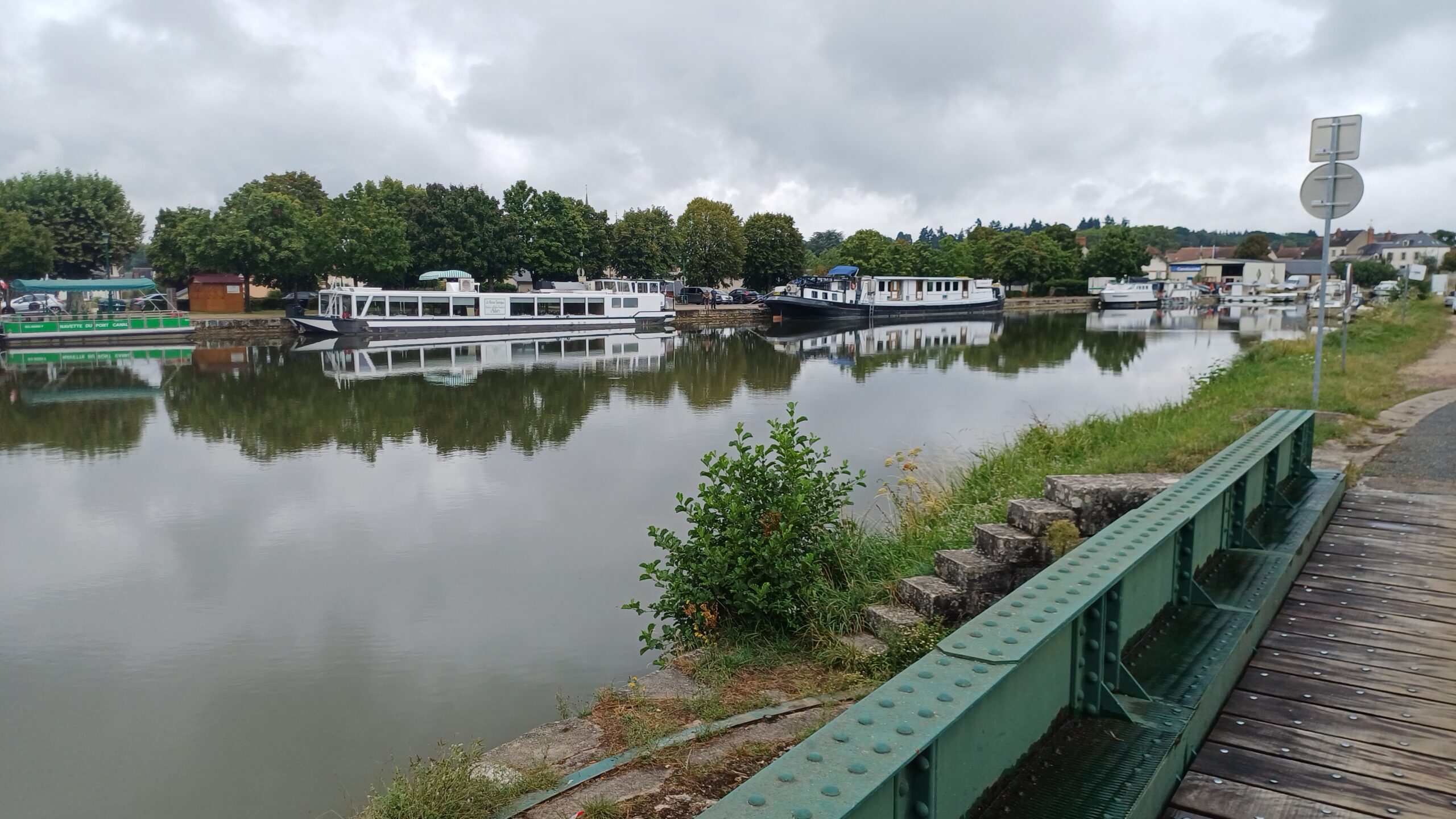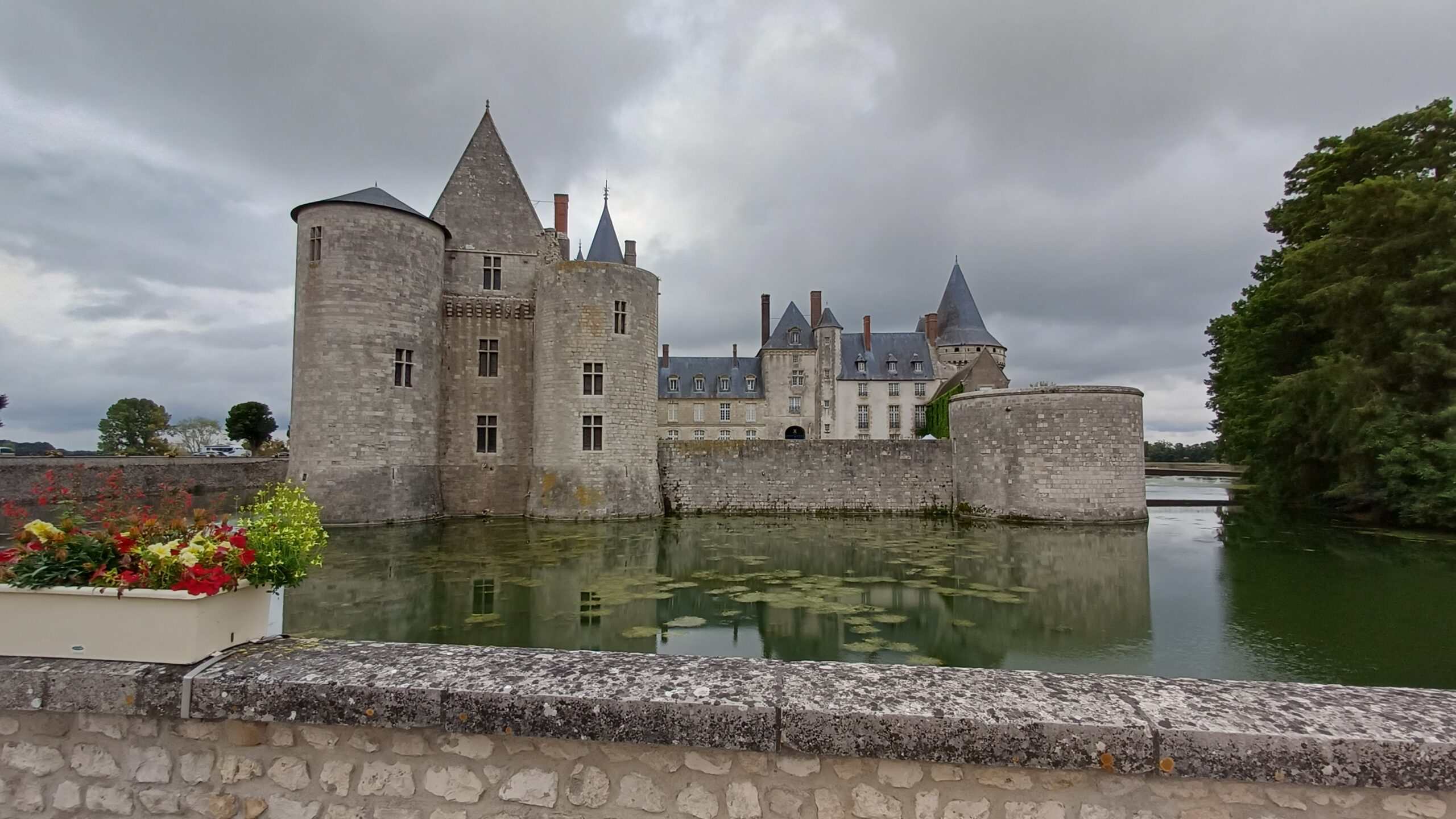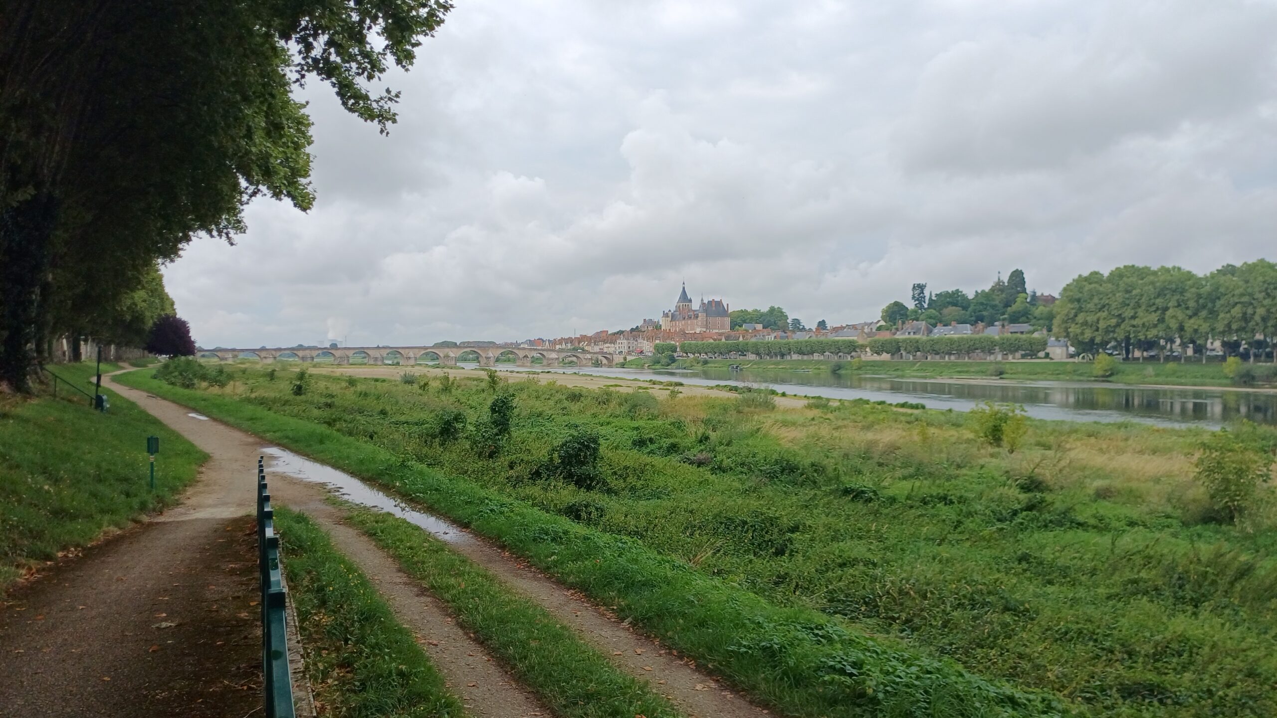 Après cet instant bricolage, je me restaure puis repart. Je franchis quelques passages d’écluses fleuris puis arrive à Briare. Joli petite ville aux allures de Venise avec des canaux et de l’eau partout. Je sors de la ville par le pont canal. C’est spécial de suivre un passage d’eau tout en passant au-dessus de la Loire. Je me retrouve rive gauche en direction de Gien. Un petit peu de dénivelé pour monter sur le plateau. Je retrouve la Loire à Gien puis monte à nouveau. Je dois faire quand même un effort. La descente qui suit est bienvenue. Je sens quand même la fatigue sur la longue portion de digue qui me reste avec un vent légèrement défavorable. Le château de Sully-sur-Loire apparait, je suis arrivé. Eh oui, je suis dans le val de Loire mais je ne pensais pas forcément voir de bâtisse comme celle-ci. Une belle chambre m’attend pour la dernière nuit.