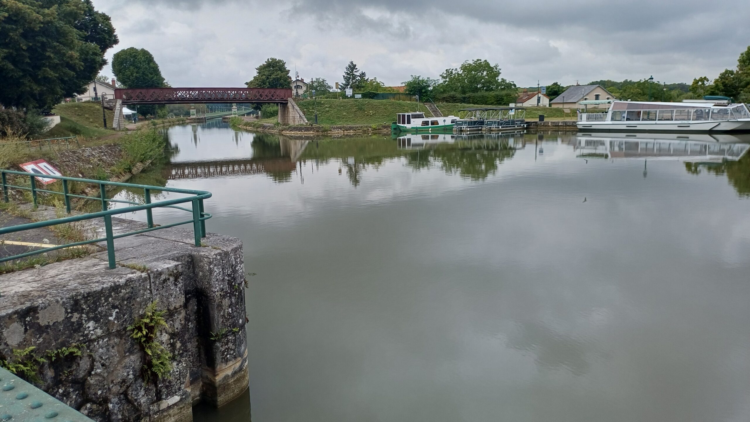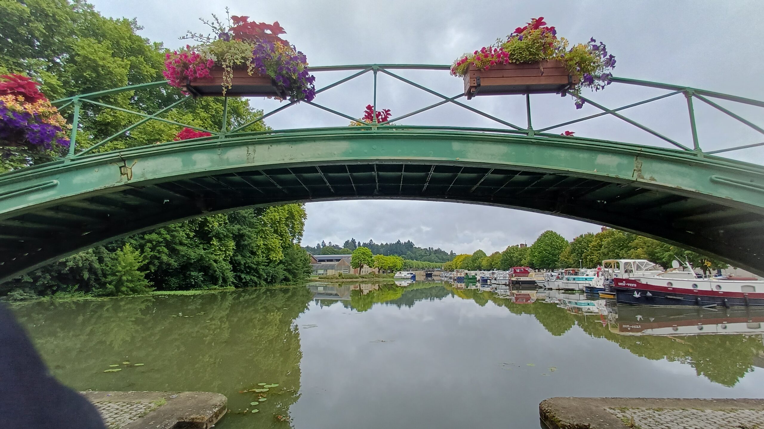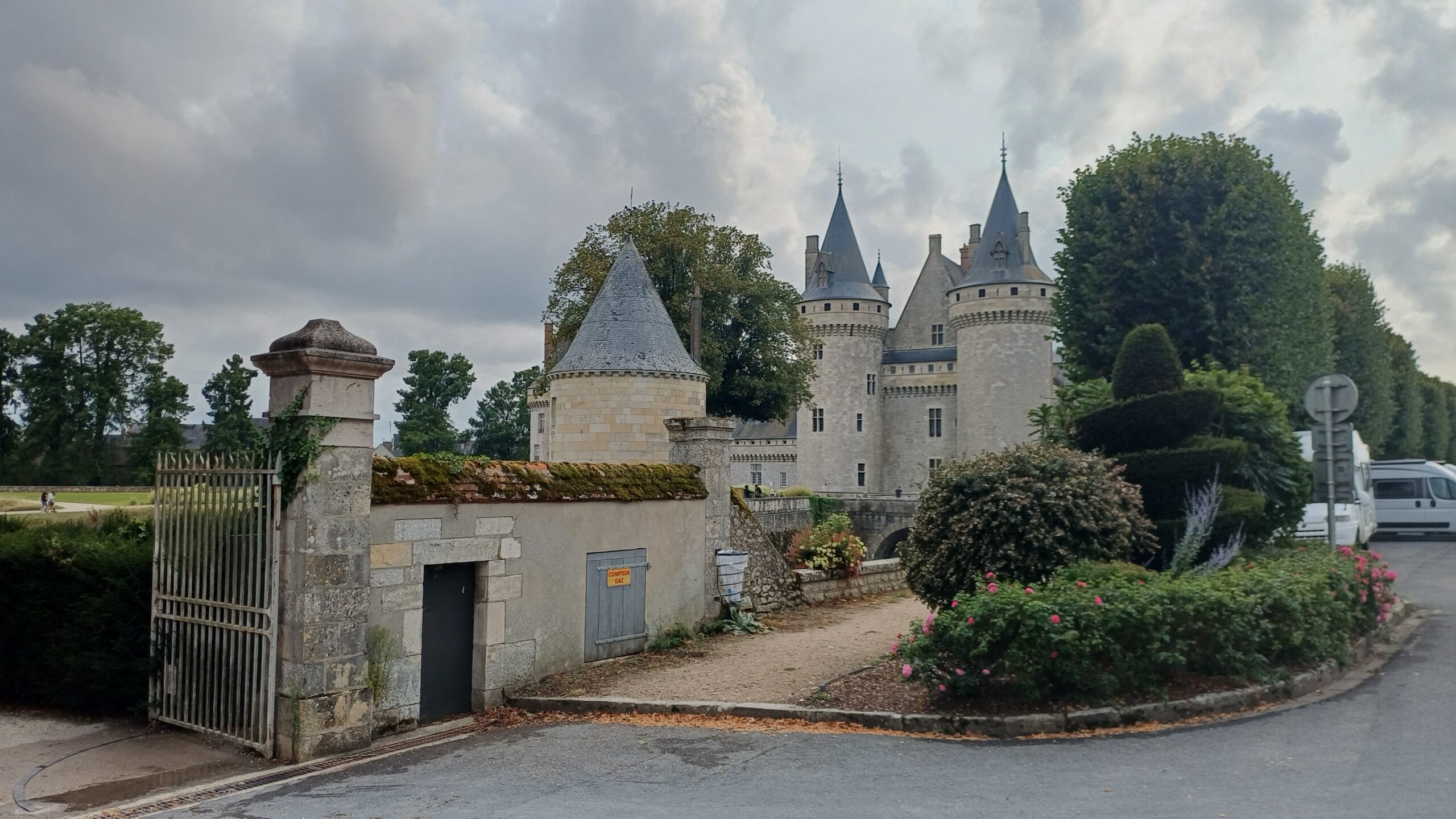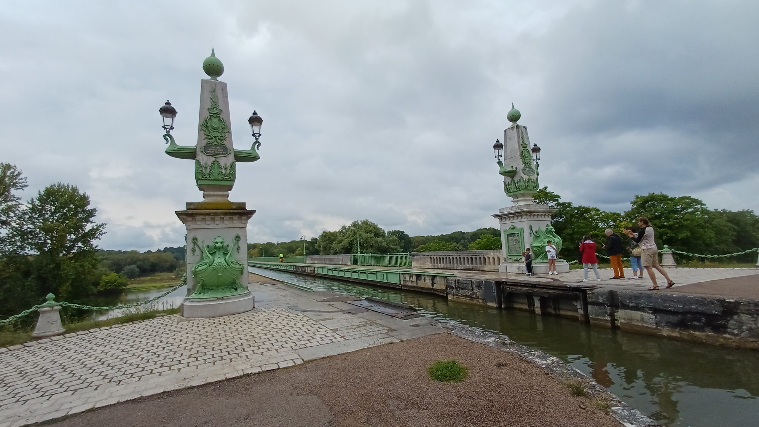 Après cet instant bricolage, je me restaure puis repart. Je franchis quelques passages d’écluses fleuris puis arrive à Briare. Joli petite ville aux allures de Venise avec des canaux et de l’eau partout. Je sors de la ville par le pont canal. C’est spécial de suivre un passage d’eau tout en passant au-dessus de la Loire. Je me retrouve rive gauche en direction de Gien. Un petit peu de dénivelé pour monter sur le plateau. Je retrouve la Loire à Gien puis monte à nouveau. Je dois faire quand même un effort. La descente qui suit est bienvenue. Je sens quand même la fatigue sur la longue portion de digue qui me reste avec un vent légèrement défavorable. Le château de Sully-sur-Loire apparait, je suis arrivé. Eh oui, je suis dans le val de Loire mais je ne pensais pas forcément voir de bâtisse comme celle-ci. Une belle chambre m’attend pour la dernière nuit.
